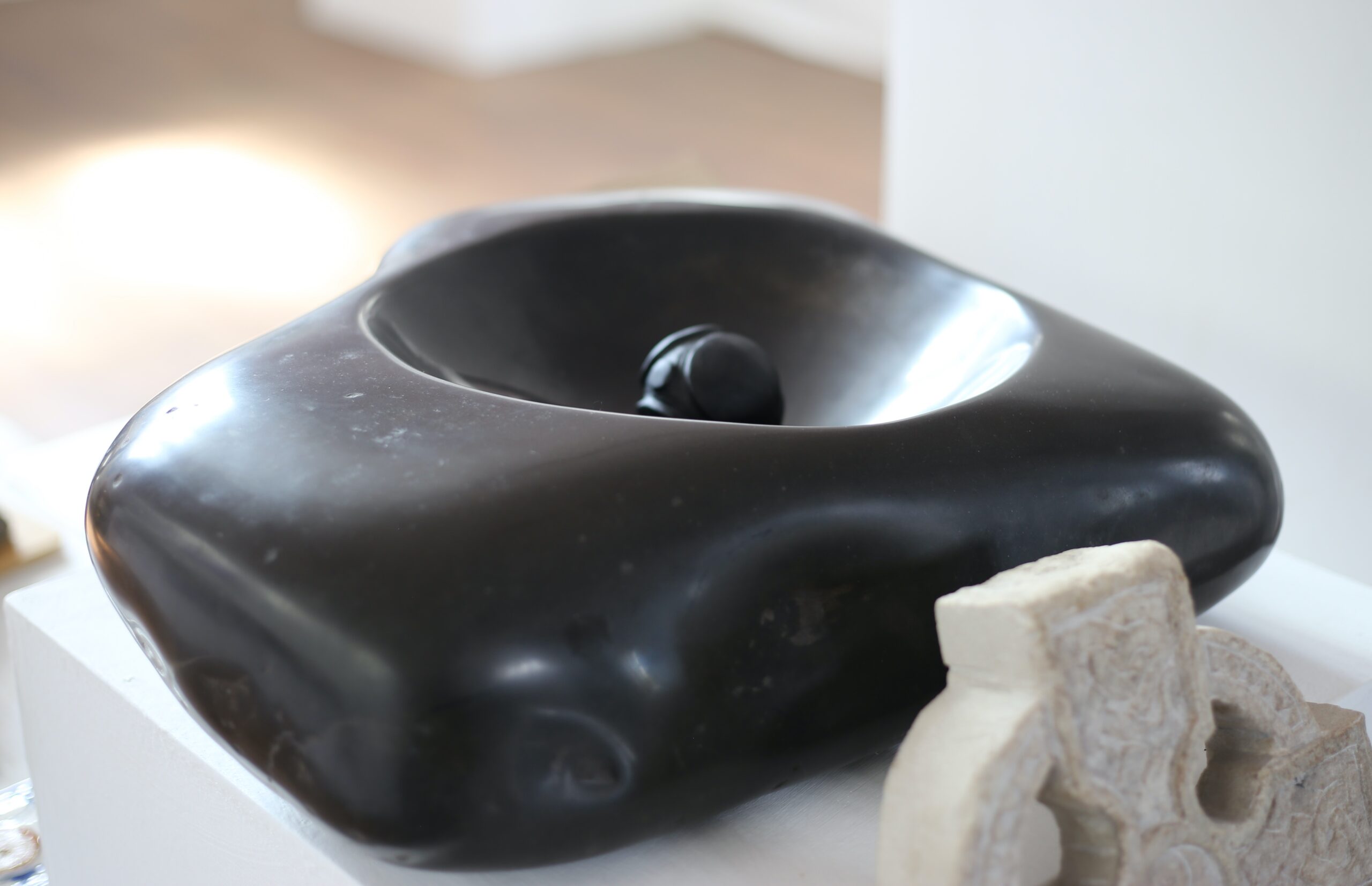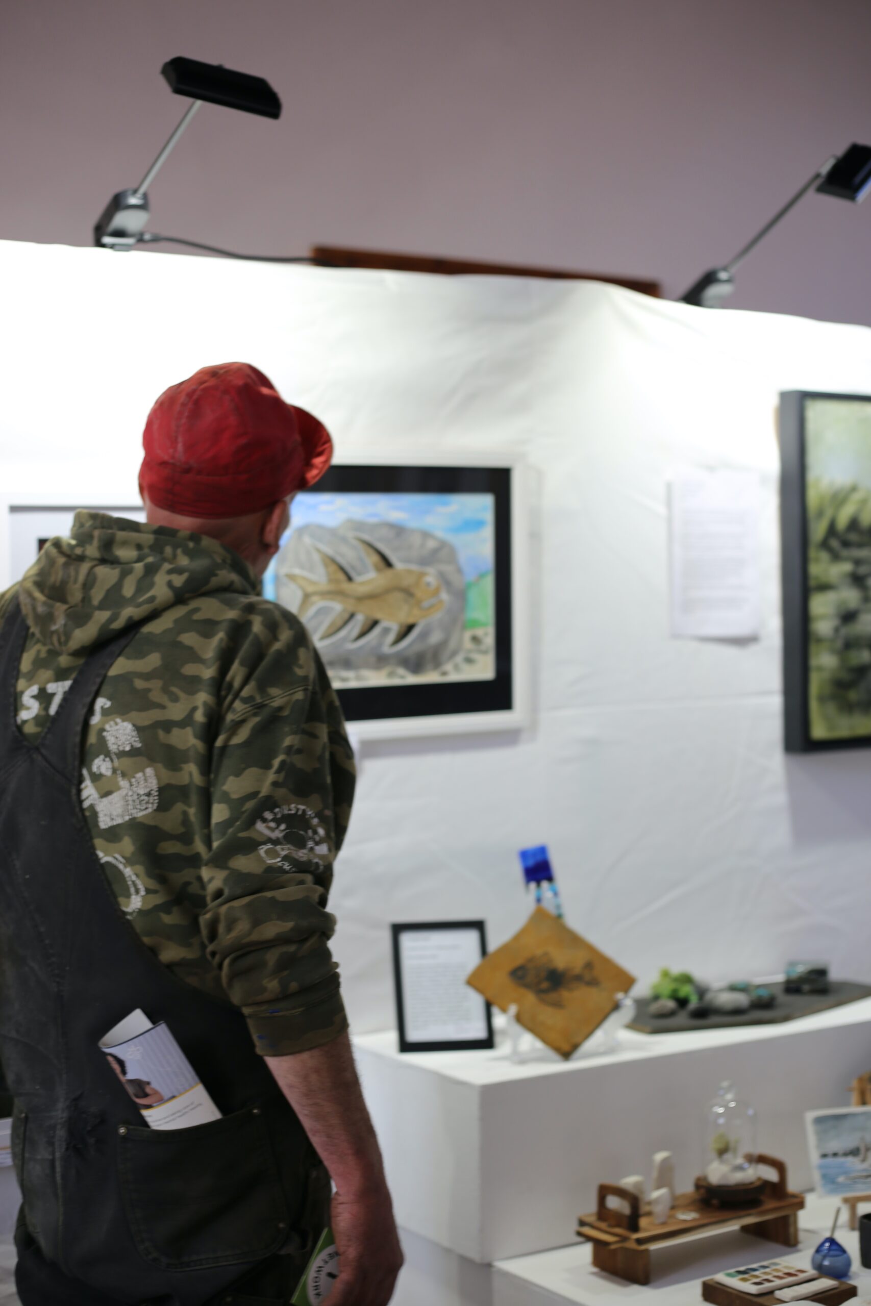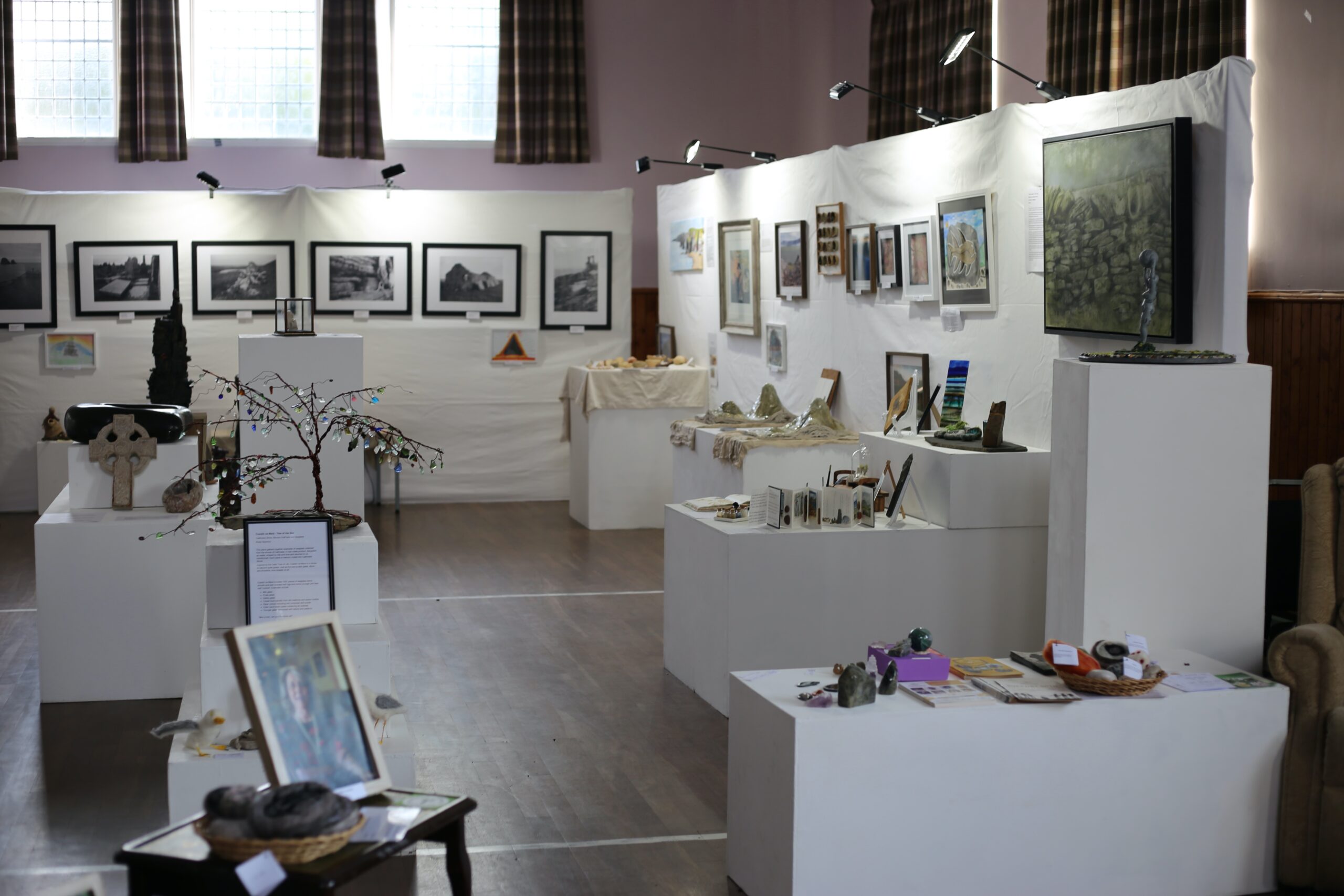 Thick cotton material stretched over temporary frames are the basis of the space, with white plinths throughout and bright exhibition lighting illuminating a really beautiful collection of photography, visual art and sculpture by artists living and working in Caithness.