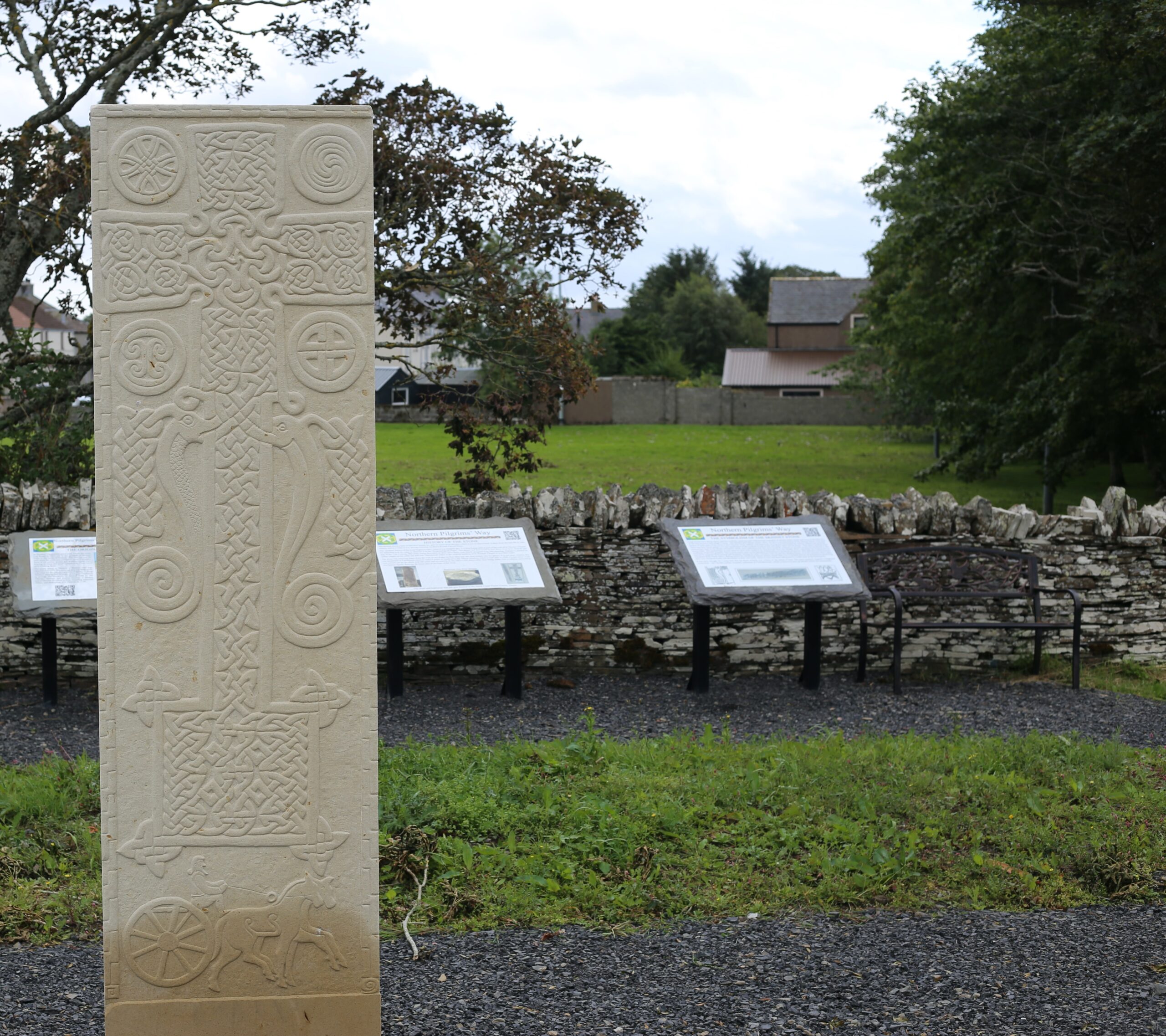 Using Zbrush, Vox replicated the complex patterns of the original carvings and expanded them include his signature candle-figure. The chariot becomes an ammonite ridden through the North Sea waves by the ultimate noble-person, the character “Eisth”, and harnessed to a fantastical water-horse. The scene erupts from the stone as an excessive relief, with Duncansby stacks behind them, and tiny salmon splashing through the waves. It is theorized that these Pictish stones were once painted.