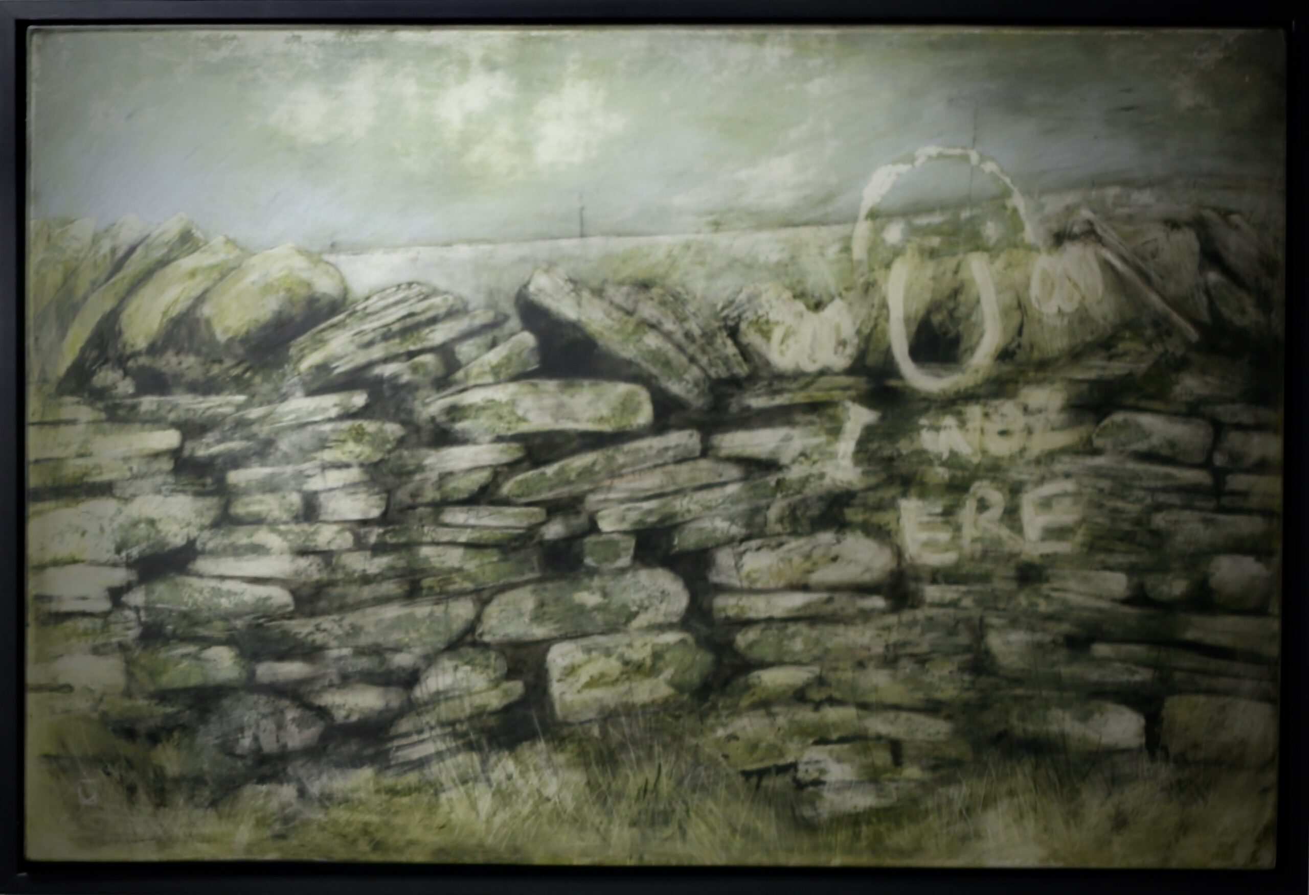 A historical mark – “I woz ere” which was sprayed across Caithness, and doubtless further, was an unholy declaration of selfhood a generation or so ago. It would have been made in oil-based spray paint at best, and then repeated across the county, and then in biro on notebooks at school. It was next echoed in Lindsay Gallacher’s They Made it Their Own, a tribute to anti-art in resin which showed a defaced drystone wall. Graffiti has popped up locally with stunning, murals in Thurso and Wick – is it the time to refine our techniques and make more? Environmentally concerned (if not environmentally-friendly) spray paints are now available and there is a good livelihood in council-sanctioned street art. This piece had previously only been shown in public once before, so it was a rare opportunity to see it.