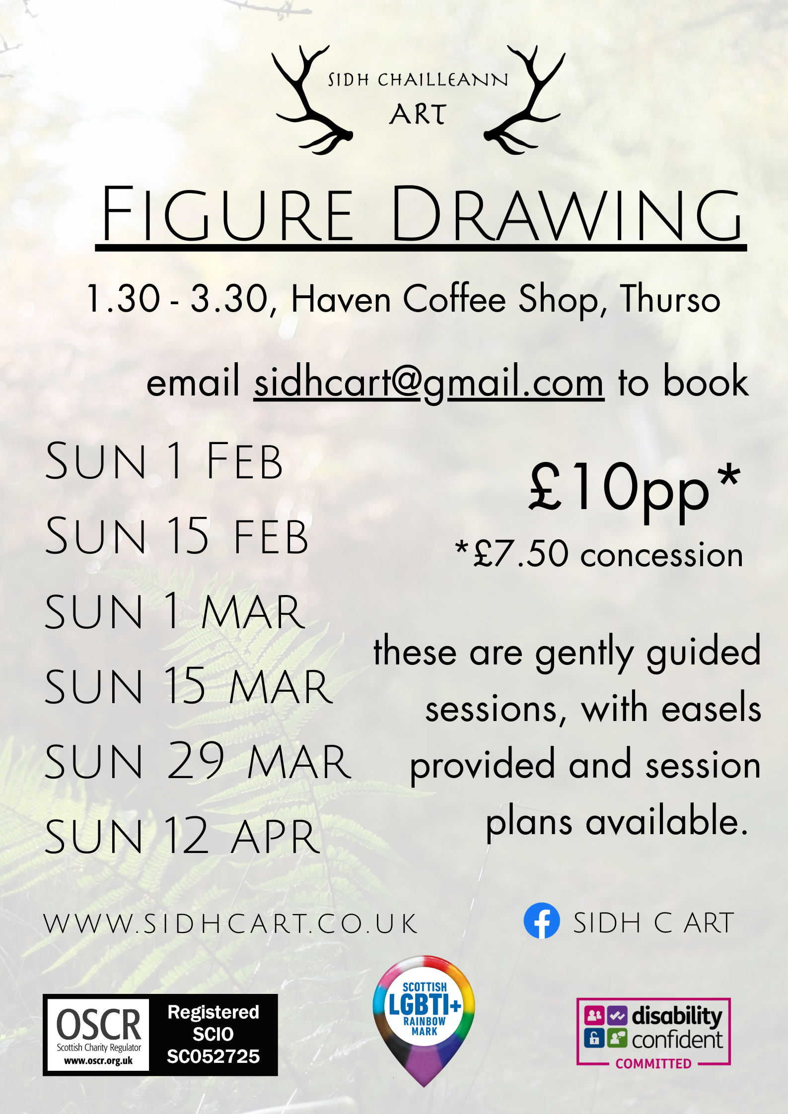 To book a place on one of the life drawing sessions, email sidhcart@gmail.com. You can book a block of sessions or one at a time. All abilities welcome, and we look forward to hearing from you!