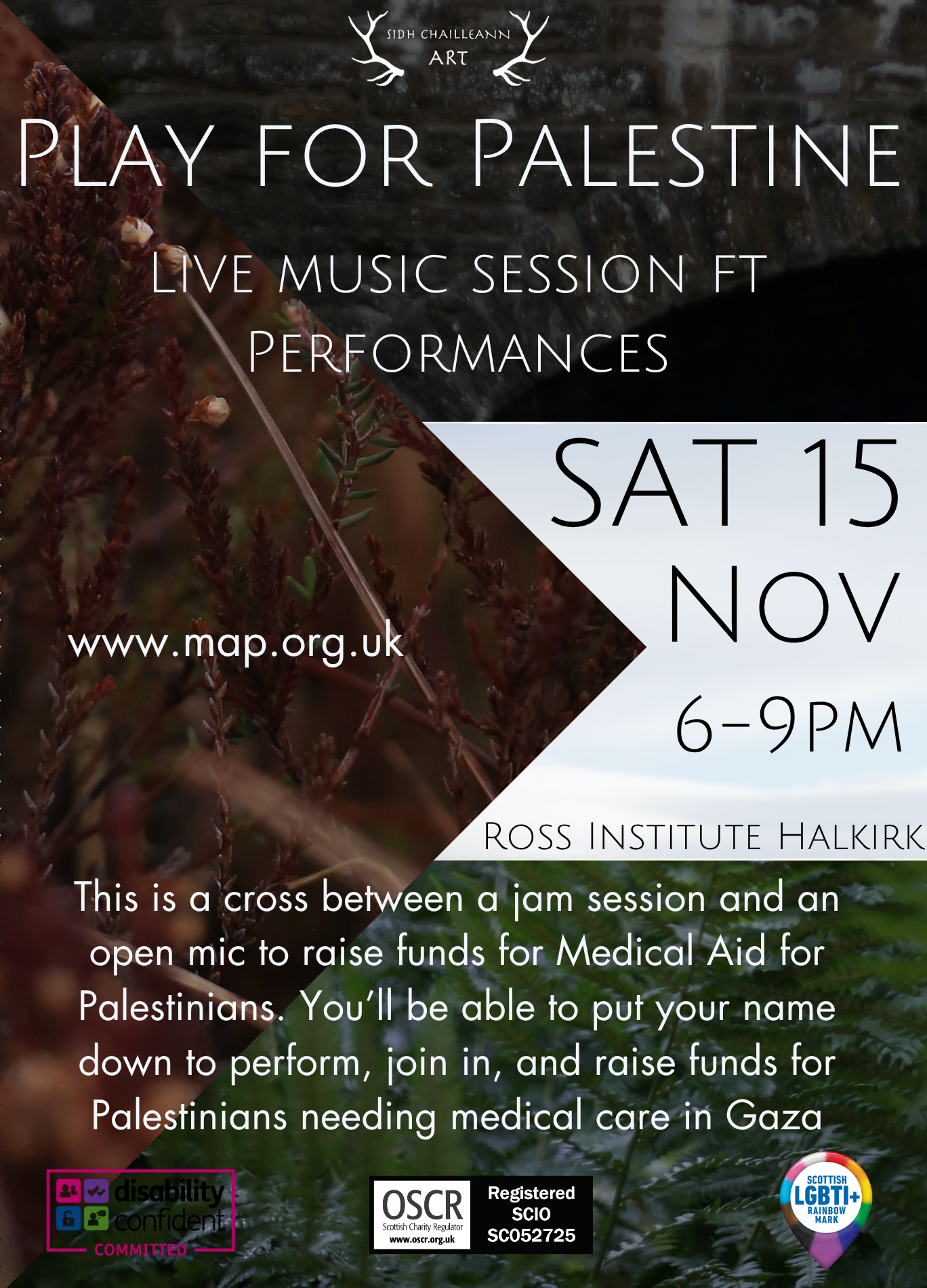 This is going to be a bit different from our usual set up. We invite all musicians to come along with their instrument – classical, contemporary, cutlery and voice. We will be asking a couple of bands and existing groups to come along. We have a sign-up sheet link below, but you can just come along and join in. The aim is to raise funds for Medical Aid for Palestinians. There’ll be buckets around the space for you to chuck your pennies and pounds into after particularly good tunes so bring change!